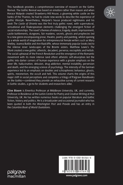 This handbook provides a comprehensive overview of research on the Gothic Revival. The Gothic Revival was based on emotion rather than reason and when Horace Walpole created Strawberry Hill House, a gleaming white castle on the banks of the Thames, he had to create new words to describe the experience of gothic lifestyle. Nevertheless, Walpole's house produced nightmares and his book The Castle of Otranto was the first truly gothic novel, with supernatural, sensational and Shakespearean elements challenging the emergent fiction of social relationships. The novel's themes of violence, tragedy, death, imprisonment, castle battlements, dungeons, fair maidens, secrets, ghosts and prophecies led to a new genre encompassing prose, theatre, poetry and painting, whilst opening up a whole world of imagination for entrepreneurial female writers such as Mary Shelley, Joanna Baillie and Ann Radcliffe, whose immensely popular books led to the intense inner landscapes of the Bronte sisters. Matthew Lewis's The Monk created a new gothic: atheistic, decadent, perverse, necrophilic and hellish. The social upheaval of the French Revolution and the emergence of the Romantic movement with its more intense (and often) atheistic self-absorption led the gothic into darker corners of human experience with a greater emphasis on the inner life, hallucination, delusion, drug addiction, mental instability, perversion and death and the emerging science of psychology. The intensity of the German experience led to an emphasis on doubles and schizophrenic behaviour, ghosts, spirits, mesmerism, the occult and hell. This volume charts the origins of this major shift in social perceptions and completes a trilogy of Palgrave Handbooks on the Gothic-combined they provide an exhaustive survey of current research in Gothic studies, a go-to for students and researchers alike.