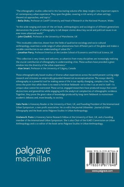 1. Introduction: Urban Ethnography Matters.- 2. From Jaffa to New York: The Scope of Urban Anthropology.- 3. Between Stereotype and Bad Governance: An Italian Ethnography.- 4. Rethinking the City as Urban Community: Views from South Europe.- 5. The Multitude of Approaches to Urban Ethnography: Blessing or Curse?.- The Lives of Others: The Production and Influence of Neighbourhood Cultures in Urban India.- 7. The Beginnings and the Ends: A 'Superdiverse' London Housing Estate.- 8. Everyday Mobility: Encountering Difference.- 9. Betwixt and Between in Beer-Sheva: Consumption and Chronotopes in the Negev.- 10. Shipbuilding Decline and Dubious Futures: A Greek Ethnography of Creative Destruction.- 11. Navigating the Seas of the World of Unemployment in America.- 12. 'Swimming against the Tide': Working Class Discourse on Gentrification in Northern Brooklyn.- 13. The Plow and the Stallion: Political Turmoil in a Working-class District of Budapest.- 14. From the Ban on Enjoyment to theInjunction to Enjoy: The Post-industrial City and its New Spaces of Control.- 15. Resistance to Places of Collective Memories: A Rapid Transformation Landscape in Beijing.- 16. Multiple Positionality: A Challenge for West African Urbanists.- 17. The Strength of Weak Heritages: Urbanity, Utopias and the Commitment to Intangible Heritage.- 18. Sport and the City: Olympic Games and the Reimagining of East London.- 19. A Revolution of the Urban Lifestyle in China? Urban Politics and Community Experience in Harbin.- 20. Secondary Cities and the Formation of Political Space in West and East Africa.- 21. Two Types of Community-based Organizations in Urban Africa.- 22. Urban Ethnography: Nothing About Us Without Us Is For Us.- 23. An Ethnography of Space, Creative Dissent and Reflective Nostalgia in the City Centre of Global Istanbul.- 24. Anglo-Indians: Buying into Nationhood?.- 25. Transnational Fragmentation of Globality: Eastern-European Post-socialist Strategies in Chicago.- 26. Haitiansin Manaus: Challenges of the Sociocultural Insertion Process of Inclusion.- 27. Imagined Multiculturalism in a Malaysian Town: Ideological Constructions and Empirical Evidences.- 28. Urban Development and Vernacular Religious Landscapes in Seoul.- 29. Becoming Cities, Losing Paradise? Gentrification in the Swiss Alps.- 30. Unfolding Lisbon: An Anthropologist Gazes at a Capital City.- 31. Lost in the Shuffle: Urban African-American Students Cast into a Rural White University in the United States.