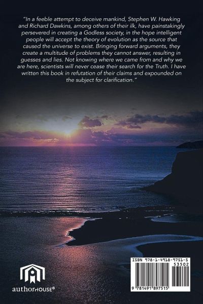"In a feeble attempt to deceive mankind, Stephen W. Hawking and Richard Dawkins, among others of their ilk, have painstakingly persevered in creating a Godless society, in the hope intelligent people will accept the theory of evolution as the source that caused the universe to exist. Bringing forward arguments, they create a multitude of problems they cannot answer, resulting in guesses and lies. Not knowing where we came from and why we are here, scientists will never cease their search for the Truth. I have written this book in refutation of their claims and expounded on the subject for clarification."