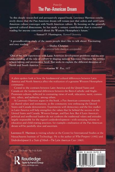 The initiative of Presidents George Bush and Bill Clinton to forge a Western Hemisphere community has been staggered by Mexico's economic and political crisis. Is this latest grand design for the hemisphere destined to follow John Kennedy's Alliance for Progress and Franklin Roosevelt's Good Neighbor Policy into the cemetery of frustrated Pan-American dreams? The United States and Canada are prosperous first-world countries with centuries-old democratic institutions; Latin America's countries are poor and, in most cases, experimenting with democratic capitalism for the first time. Can a coherent, durable community like the European Union be constructed with building blocks so different?Why are the United States and Canada so much more prosperous, so much more democratic than is Latin America? Why has it taken so long for Latin America to conclude that democratic capitalism and good relations with the United States are in its best interest? And what might be done to enhance the prospects for a dynamic community in the Western Hemisphere?These are the questions Lawrence Harrison addresses in The Pan-American Dream. Central to the contrasts between Latin America and the United States and Canada are the fundamental differences between the Ibero-Catholic and Anglo-Protestant cultures, reflected in contrasting views of work, education, merit, community, ethics, and authority, among others. But, as he stresses, cultural values and attitudes change, and Pan-Americanism can be more than a dream.A Pan-American community depends on shared values and institutions, as the community now embracing the United States and Canada demonstrates. Experiments with democracy and the free market in Latin America will help strengthen the values that lie behind the success of the United States and Canada, Western Europe, and East Asia. But if Latin America's political and intellectual leaders do not confront the traditional values and attitudes largely responsible for the region's underdevelopment?with sweeping reforms in education and child-rearing practices, for example?realization of the Pan-American dream will be painfully slow and uncertain.