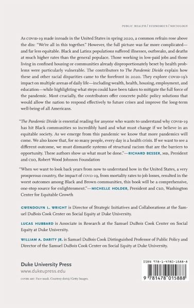 The contributors to The Pandemic Divide analyze and explain the myriad racial disparities that came to the forefront of the COVID-19 pandemic while highlighting what steps could have been taken to mitigate its impact.
