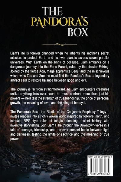 An Award-Winning YA Sci-Fi & Dark Fantasy Series. A clean, high-stakes coming-of-age adventure about resilience, self-discovery, faith, and the power of doing what's right. A throne that cost his mother's life. A prophecy buried through seven worlds. Magic, myth, and darkness. When Liam Hale receives a cryptic message on his 14th birthday, he is left with one choice: fulfill the mission his mother started. For that, he needs to embrace his demigod roots, learn his powers, and get initiated into the magical community. As dark forces grow, shattering the balance between good and evil, Liam must find The Pandora's Box, hidden in the depths of the Eerie Forest, protected by the sinister Erlking. Accompanied by a fiercely loyal non-magical friend, a mage apprentice, and two bickering witch-twins, they embark on missions, decoding secrets, and stealing an ancient artifact under the protection of the great centaur Chiron. But the deeper they go, the harder it is to get out alive. ¿¿¿¿¿¿¿ "Packed with thrilling action sequences, engaging characters, fantastical beasts, and sky-high stakes." - Kirkus Reviews For readers who crave layered worldbuilding, intelligent dialogue, and emotionally complex characters. Told through multiple points of view and designed for older teens and crossover adult readers. Winner of the Literary Titan Award Five Stars - Readers' Favorite Eric Hoffer Book Award Honorable Mention