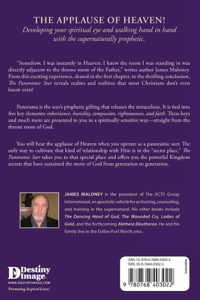 The Applause of Heaven! Developing your spiritual eye and walking hand in hand with the supernaturally prophetic. "Somehow, I was instantly in Heaven; I knew the room I was standing in was directly adjacent to the throne room of the Father," writes author James Maloney. From this exciting experience, shared in the first chapter, to the thrilling conclusion, The Panoramic Seer reveals realms and realities that most Christians don't even know exist! Panorama is the seer's prophetic gifting that releases the miraculous. It is tied into five key elements: inheritance, humility, compassion, righteousness, and faith. These keys and much more are presented to you in a spiritually sensitive way-straight from the throne room of God. You will hear the applause of Heaven when you operate as a panoramic seer. The only way to cultivate that kind of relationship with Him is in the "secret place." The Panoramic Seer takes you to that special place and offers you the powerful Kingdom secrets that have sustained the move of God from generation to generation.