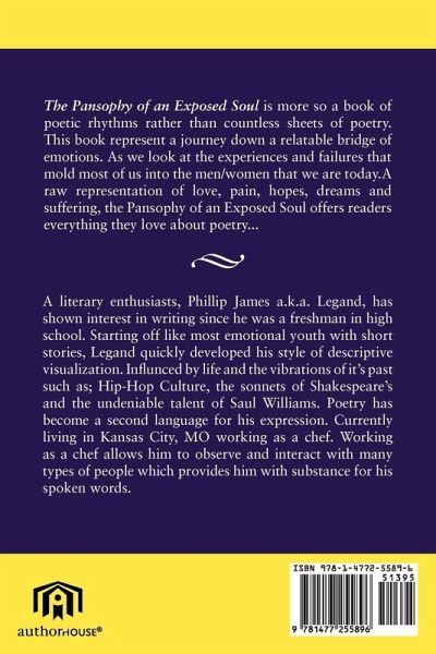 The Pansophy of an Exposed Soul is more so a book of poetic rhythms rather than countless sheets of poetry. This book represent a journey down a relatable bridge of emotions. As we look at the experiences and failures that mold most of us into the men/women that we are today. A raw representation of love, pain, hopes, dreams and suffering, the Pansophy of an Exposed Soul offers readers everything they love about poetry...