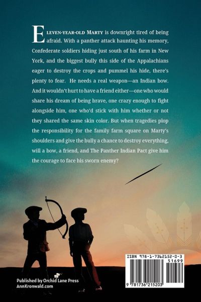 Eleven-year-old Marty is downright tired of being afraid. With a panther attack haunting his memory, Confederate soldiers hiding just south of his farm in New York, and the biggest bully this side of the Appalachians eager to destroy the crops and pummel his hide, there's plenty to fear. He needs a real weapon-an Indian bow. And it wouldn't hurt to have a friend either-one who would share his dream of being brave, one crazy enough to fight alongside him, one who'd stick with him whether or not they shared the same skin color. But when tragedies plop the responsibility for the family farm square on Marty's shoulders and give the bully a chance to destroy everything, will a bow, a friend, and The Panther Indian Pact give him the courage to face his sworn enemy?