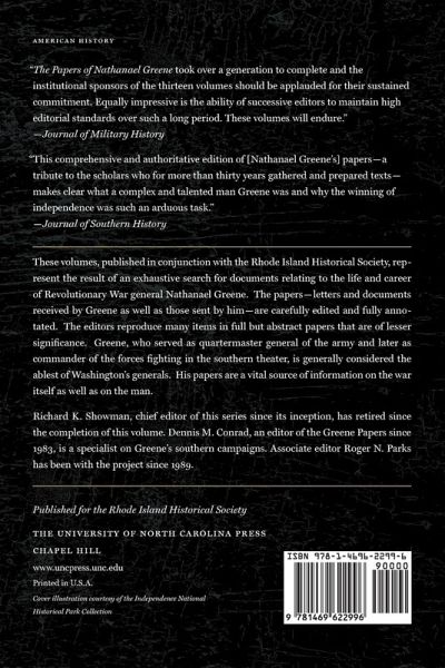 These volumes, published in conjunction with the Rhode Island Historical Society, represent the result of an exhaustive search for documents relating to the life and career of Revolutionary War general Nathanael Greene. The papers--letters and documents received by Greene as well as those sent by him--are carefully edited and fully annotated. The editors reproduce many items in full but abstract papers that are of lesser significance. Greene, who served as quartermaster general of the army and later as commander of the forces fighting in the southern theater, is generally considered the ablest of Washington's generals. His papers are a vital source of information on the war itself as well as on the man.