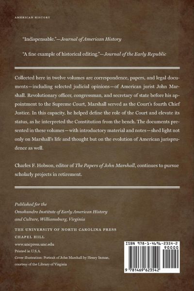 Collected here are correspondence, papers, and legal documents--including selected judicial opinions--of American jurist John Marshall. Revolutionary officer, congressman, and secretary of state before his appointment to the Supreme Court, Marshall served as the Court's fourth Chief Justice. In this capacity, he helped define the role of the Court and elevate its status, as he interpreted the Constitution from the bench. The documents presented in these volumes--with introductory material and notes--shed light not only on Marshall's life and thought but on the evolution of American jurisprudence as well. "Indispensable--Journal of American History