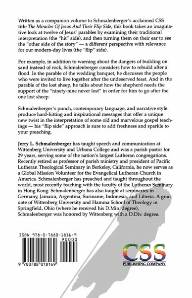 Written as a companion volume to Schmalenberger's acclaimed CSS title The Miracles Of Jesus And Their Flip Side, this book takes an imaginative look at twelve of Jesus' parables by examining their traditional interpretation (the "hit" side), and then turning them on their ear to see the "other side of the story" -- a different perspective with relevance for our modern-day lives (the "flip" side). For example, in addition to warning about the dangers of building on sand instead of rock, Schmalenberger considers how to rebuild after a flood. In the parable of the wedding banquet, he discusses the people who were invited live together after the undeserved feast. And in the parable of the lost sheep, he talks about how the shepherd needs the support of the "ninety-nine never lost" in order for him to go after the one lost sheep. Schmalenberger's punch, contemporary language, and narrative style produce hard-hitting and inspirational messages that offer a unique new twist in the interpretation of some old and marvelous gospel teachings -- his "flip side" approach is sure to add freshness and sparkle to your preaching. Jerry L. Schmalenberger has taught speech and communication at Wittenberg University and Urbana College and was a parish pastor for 29 years, serving some of the nation's largest Lutheran congregations. Recently retired as professor of parish ministry and president of Pacific Lutheran Theological Seminary in Berkeley, California, he now serves as a Global Mission Volunteer for the Evangelical Lutheran Church in America. Schmalenberger has preached and taught throughout the world, most recently teaching with the faculty of the Lutheran Seminary in Hong Kong. Schmalenberger has also taught at seminaries in Germany, Jamaica, Argentina, Suriname, Indonesia, and Liberia. A graduate of Wittenberg University and Hamma School of Theology in Springfield, Ohio (where he received his D.Min. degree), Schmalenberger was honored by Wittenberg with a D.Div. degree.