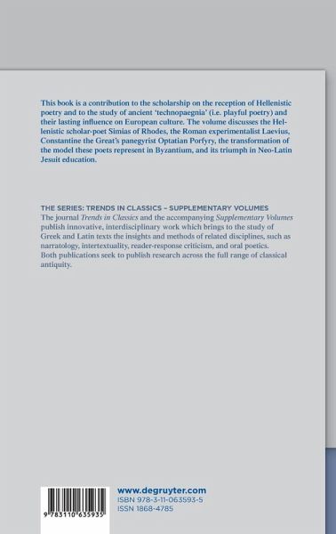 This book's concern is with notoriously obscure ancient poets-riddlers, whom it argues to have been an essential, albeit necessarily marginal, element of the literary landscape of Antiquity, which, in addition, exerted subtle yet lasting influence on European culture. The three first essays in this book trace a direct line of influence between the early Hellenistic scholar-poet Simias of Rhodes, the late Republican Roman experimentalist Laevius and Constantine the Great's virtuoso panegyrist Optatian Porfyry, whereas the fourth essay discusses the preservation and transformation of the model invented by Simias in Byzantium. The Appendix reflects on the triumph of this intellectual paradigm in Neo-Latin Jesuit education by investigating the case of a peripheral yet highly influential Central European college at the turn of the sixteenth and seventeenth centuries. This book is at once a contribution to the scholarship on the reception of Hellenistic poetry and to the study of ancient 'technopaegnia' (i.e. playful poetry) and their cultural influence in Antiquity, Byzantium and post-mediaeval Europe.