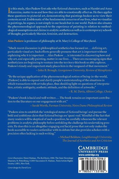 In this study, Alan Paskow first asks why fictional characters, such as Hamlet and Anna Karenina, matter to us and how they emotionally affect us. He then applies these questions to painting, demonstrating that certain paintings beckon us to view their contents as real. As emblematic of the fundamental concerns of our lives, paintings, he argues, are not simply in our heads but in our world. Paskow also situates the phenomenological approach to the experience of painting in relation to contemporary schools of thought, particularly Marxist, feminist, and deconstructionist.