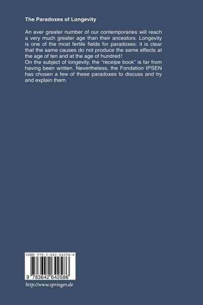 An ever greater number of our contemporaries will reach a very much greater age than their ancestors. Longevity is one of the most fertile fields for paradoxes: it is clear that the same causes do not produce the same effects at the age of ten and at the age of one hundred! On the subject of longevity, the "recipe book" is far from having been written. Nevertheless, the Fondation IPSEN has chosen a few of these paradoxes to discuss and try and explain them.