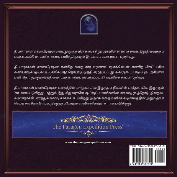 தி பாராகான் பயணம் என்பது நிலவில் சிக்கித் தவிக்கும் இரட்டையர்களின் பரபரப்பான கதை. இந்த கதை சிறந்த ஆய்வாளர் சர் எர்னஸ்ட் ஷாக்கில்டன்னால் ஈர்க்கப்பட்டுள்ளது. தனது தைரியத்துடனும் மற்றும் விவேகத்துடனும் அவர் கப்பலை தவற விட்ட ஆனால் அவர்களின் நம்பிக்கையை இழக்காத 27 பேரை காப்பாற்றினார்.