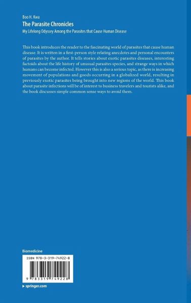 This book introduces the reader to the fascinating world of parasites that cause human disease. It is written in a first-person style relating anecdotes and personal encounters of parasites by the author. It tells stories about exotic parasites diseases, interesting factoids about the life history of unusual parasites species, and strange ways in which humans can become infected. However this is also a serious topic, as there is increasing movement of populations and goods occurring in a globalized world, resulting in previously exotic parasites being brought into new regions of the world. This book about parasite infections will be of interest to business travelers and tourists alike, and the book discusses simple common sense ways to avoid them.