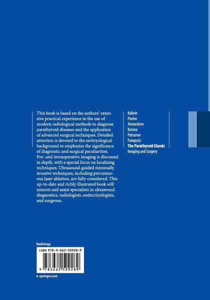 This book is based on the authors' extensive practical experience in the use of modern radiological methods to diagnose parathyroid diseases and the application of advanced surgical techniques. Detailed attention is devoted to the embryological background to emphasize the significance of diagnostic and surgical peculiarities. Pre- and intraoperative imaging is discussed in depth, with a special focus on localizing techniques. Ultrasound-guided minimally invasive techniques, including percutaneous laser ablation, are fully considered. This up-to-date and richly illustrated book will interest and assist specialists in ultrasound diagnostics, radiologists, endocrinologists, and surgeons.
