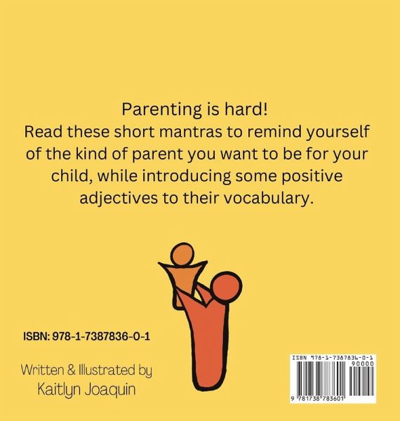 Parenting is hard! Read these short mantras to remind yourself of the kind of parent you want to be for your child, while introducing some positive adjectives to their vocabulary. This book is composed of nine concepts made up of three positive adjectives, followed by a simple sentence and an abstractive illustration to relate. It stimulates a connection between the positive adjectives and an action or idea, while sparking questions like "what does compassionate mean?".