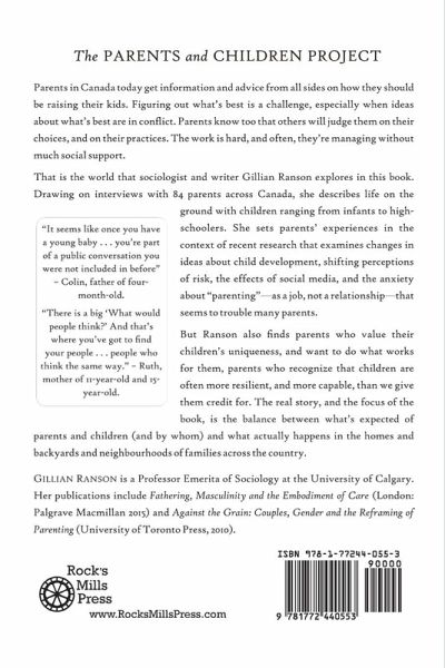 Parents in Canada today get information and advice from all sides on how they should be raising their kids. Figuring out what’s best is a challenge, especially when ideas about what’s best are in conflict. Parents know too that others will judge them on their choices, and on their practices. The work is hard, and often, they’re managing without much social support. That is the world that sociologist and writer Gillian Ranson explores in this book. Drawing on interviews with 84 parents across Canada, she describes life on the ground with children ranging from infants to high-schoolers. She sets parents’ experiences in the context of recent research that examines changes in ideas about child development, shifting perceptions of risk, the effects of social media, and the anxiety about "parenting"—as a job, not a relationship—that seems to trouble many parents. But Ranson also finds parents who value their children’s uniqueness, and want to do what works for them, parents who recognize that children are often more resilient, and more capable, than we give them credit for. The real story, and the focus of the book, is the balance between what’s expected of parents and children (and by whom) and what actually happens in the homes and backyards and neighbourhoods of families across the country.