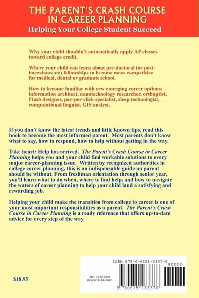 From freshman orientation through senior year, this book addresses career planning: what parents and students should do. Learn about current career trends, job options, choosing a major and career, and conducting a job search to land a satisfying and rewarding job.