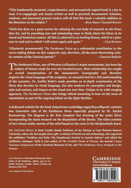 Neils's examination of the Parthenon frieze's visual language offers new insight into this important monument.