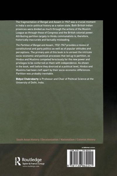 The fragmentation of Bengal and Assam in 1947 was a crucial moment in India's socio-political history as a nation state. Both the British Indian provinces were divided as much through the actions of the Muslim League as by those of Congress and the British colonial power. Attributing partition largely to Hindu communalists is, therefore, historically inaccurate and factually misleading. The Partition of Bengal and Assam provides a review of constitutional and party politics as well as of popular attitudes and perceptions. The primary aim of this book is to unravel the intricate socio-economic and political processes that led up to partition, as Hindus and Muslims competed ferociously for the new power and privileges to be conferred on them with independence. As shown in the book, well before they divorced at a political level, Hindus and Muslims had been cleaved apart by their socio-economic differences. Partition was probably inevitable.