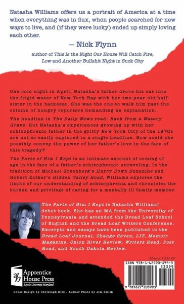 One cold night in April, Natasha's father drove his car into the frigid water of New York Bay with her two-year-old half-sister in the backseat. She was the one to walk him past the column of hungry reporters demanding an explanation. The headline in The Daily News read: Back from a Watery Grave. But Natasha's experiences growing up with her schizophrenic father in the gritty New York City of the 1970s are not so easily captured in a single headline. How could she possibly convey the power of her father's love in the face of this tragedy? The Parts of Him I Kept is an intimate account of coming of age in the face of a father's schizophrenic unraveling. In the tradition of Michael Greenberg's Hurry Down Sunshine and Robert Kolker's Hidden Valley Road, Williams explores the limits of our understanding of schizophrenia and chronicles the burden and privilege of caring for a mentally ill family member.