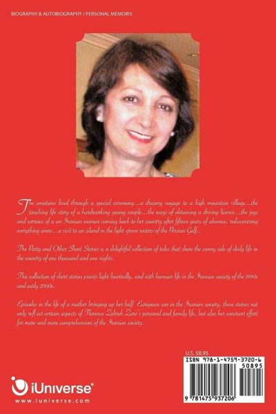 The emotions lived through a special ceremony...a dreamy voyage to a high mountain village...the touching life story of a hardworking young couple...the ways of obtaining a driving licence...the joys and sorrows of a an Iranian woman coming back to her country after fifteen years of absence, rediscovering everything anew...a visit to an island in the light-green waters of the Persian Gulf... The Party and Other Short Stories is a delightful collection of tales that show the sunny side of daily life in the country of one thousand and one nights. This collection of short stories paints light-heartedly, and with humour life in the Iranian society of the 1990s and early 2000s. Episodes in the life of a mother bringing up her half-European son in the Iranian society, these stories not only reflect certain aspects of Florence Zohreh Zaré's personal and family life, but also her constant effort for more and more comprehension of the Iranian society.