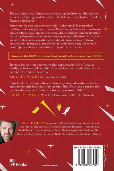 ""His was a ministry of incarnation-touching the infected, dining with sinners, defending the defenseless. The sick needed a physician, and the Physician had come."" Enter into the greatest story ever told. In this carefully researched retelling of the story of Jesus, pastor Russ Ramsey invites us to rediscover our wonder at Jesus' sinless life, brutal death, and glorious resurrection. Featuring forty short chapters recounting key episodes from Jesus' time on earth, this book expands on the biblical narrative in a fresh and creative way-giving us a taste of what it would have been like to walk next to Jesus and experience his earthly ministry firsthand. Also including The Advent of the Lamb of God and The Mission of the Body of Christ, the Retelling the Story series explores the narrative arc of the Bible from Genesis through Revelation in compelling language that is faithful to the text of Scripture. The stories are told afresh to help readers hide God's word in their hearts by way of their imaginations.