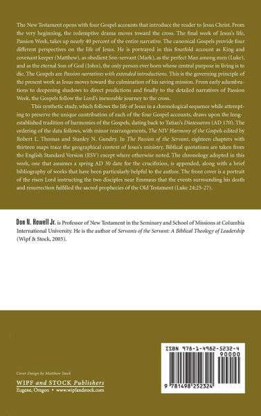 The New Testament opens with four Gospel accounts that introduce the reader to Jesus Christ. From the very beginning, the redemptive drama moves toward the cross. The final week of Jesus's life, Passion Week, takes up nearly 40 percent of the entire narrative. The canonical Gospels provide four different perspectives on the life of Jesus. He is portrayed in this fourfold account as King and covenant keeper (Matthew), as obedient Son-servant (Mark), as the perfect Man among men (Luke), and as the eternal Son of God (John), the only person ever born whose central purpose in living is to die. The Gospels are Passion narratives with extended introductions. This is the governing principle of the present work as Jesus moves toward the culmination of his saving mission. From early adumbrations to deepening shadows to direct predictions and finally to the detailed narratives of Passion Week, the Gospels follow the Lord's inexorable journey to the cross. This synthetic study, which follows the life of Jesus in a chronological sequence while attempting to preserve the unique contribution of each of the four Gospel accounts, draws upon the long-established tradition of harmonies of the Gospels, dating back to Tatian's Diatessaron (AD 170). The ordering of the data follows, with minor rearrangements, The NIV Harmony of the Gospels edited by Robert L. Thomas and Stanley N. Gundry. In The Passion of the Servant, eighteen chapters with thirteen maps trace the geographical context of Jesus's ministry. Biblical quotations are taken from the English Standard Version (ESV) except where otherwise noted. The chronology adopted in this work, one that assumes a spring AD 30 date for the crucifixion, is appended, along with a brief bibliography of works that have been particularly helpful to the author. The front cover is a portrait of the risen Lord instructing the two disciples near Emmaus that the events surrounding his death and resurrection fulfilled the sacred prophecies of the Old Testament (Luke 24:25-27).