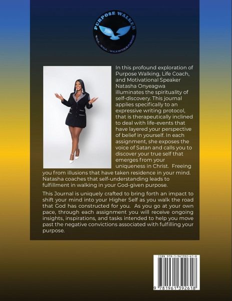 In this profound exploration of Purpose Walking, Life Coach, and Motivational Speaker Natasha Onyeagwa illuminates the spirituality of self-discovery. This journal applies specifically to an expressive writing protocol, that is therapeutically inclined to deal with life events that have layered your perspective of belief in yourself. In each assignment, she exposes the voice of Satan and calls you to discover your true self that emerges from your uniqueness in Christ. Freeing you from illusions that have taken residence in your mind. Natasha coaches that self-understanding leads to fulfillment in walking in your God-given purpose. This Journal is uniquely crafted to bring forth an impact to shift your mind into your Higher Self as you walk the road that God has constructed for you. As you go at your own pace, through each assignment you will receive ongoing insights, inspirations, and tasks intended to help you move past the negative convictions associated with fulfilling your purpose.
