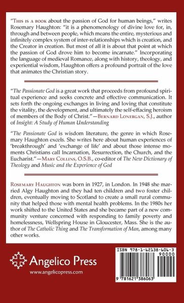 "This is a book about the passion of God for human beings," writes Rosemary Haughton: "it is a phenomenology of divine love for, in, through and between people, which means the entire, mysterious and infinitely complex system of inter-relationships which is creation, and the Creator in creation. But most of all it is about that point at which the passion of God drove him to become incarnate." Incorporating the language of medieval Romance, along with history, theology, and experiential wisdom, Haughton offers a profound portrait of the love that animates the Christian story. "The Passionate God is a great work that proceeds from profound spiritual experience."--Bernard Lonergan, S.J., author of Insight: A Study of Human Understanding "The Passionate God is wisdom literature, the genre in which Rosemary Haughton excels."--Mary Collins, O.S.B., co-editor of The New Dictionary of Theology and Music and the Experience of God