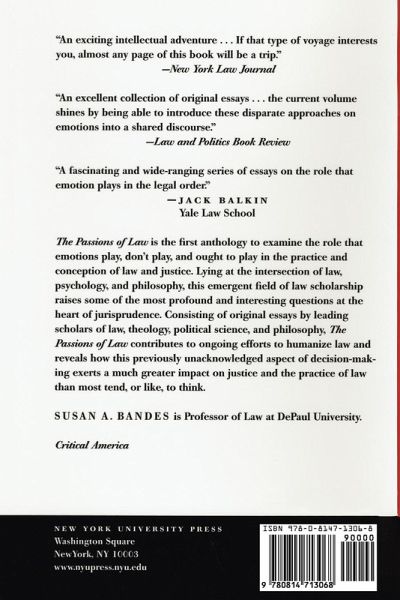 The Passions of Law is the first anthology to treat the role that emotions play, don't play, and ought to play in the practice and conception of law and justice. Lying at the intersection of law, psychology, and philosophy, this emergent field of law scholarship raises some of the most profound and interesting questions at the heart of jurisprudence. For example, what role do emotions ranging from disgust to compassion play in the decision-making processes of judges, lawyers, juries, and clients? What emotions belong in which legal contexts? Is there a hierarchy of emotions, and, if so, through what sources do we identify it? To what extent are emotions subject to change or tutelage? How can we evaluate the role of emotion in such disparate contexts as death sentencing, laws about same sex marriage, hate crime legislation, punitive damages or shaming penalties? Consisting of original essays by leading scholars of law, theology, political science, and philosophy, The Passions of Law contributes to ongoing efforts to humanize law and reveals how this previously unacknowledged aspect of decision-making exerts a much greater impact on justice and the practice of law than most tend, or like, to think. Learn more about Susan Bandes