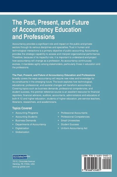 Accountancy provides a significant role and impact on the public and private sectors through its various disciplines and specialties. Trust in human and technological interactions is a primary objective of public accounting. Accountancy provides the strategic capability to access and interpret organizational performance. Therefore, because of its impactful role, it is important to understand and project how accountancy will change as a profession. As accountancy continuously evolves, it mandates agility among stakeholders, particularly those in education and the professions. The Past, Present, and Future of Accountancy Education and Professions broadly covers the ways accountancy will require new roles and knowledge for its constituents in the emerging future. The book explores how technological, educational, professional, and societal changes will transform accountancy. Covering topics such as business demands, professional competencies, and student success, this premier reference source is an excellent resource for financial reporters, financial advisors, auditors, accountants, administrators and educators of both K-12 and higher education, students of higher education, pre-service teachers, librarians, researchers, and academicians.