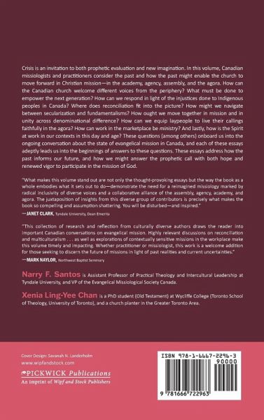 Crisis is an invitation to both prophetic evaluation and new imagination. In this volume, Canadian missiologists and practitioners consider the past and how the past might enable the church to move forward in Christian mission--in the academy, agency, assembly, and the agora. How can the Canadian church welcome different voices from the periphery? What must be done to empower the next generation? How can we respond in light of the injustices done to our Indigenous brothers and sisters? Where does reconciliation fit into the picture? How might we navigate between secularization and fundamentalisms? How ought we move together in mission and in unity across denominational difference? How can we equip laypeople to live their callings faithfully in the agora? How can work in the marketplace be ministry? And lastly, how is the Spirit at work in our contexts in this day and age? These questions (among others) onboard us into the ongoing conversation about the state of evangelical mission in Canada, and each of these essays adeptly lead us into the beginnings of answers to these questions. These essays address how the past informs our future, and how we might answer the prophetic call with both hope and renewed vigor to participate in the mission of God.