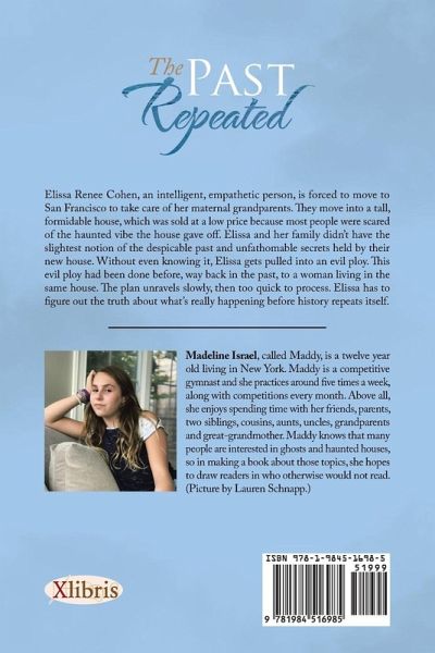 About the author - Madeline Yehudit Israel, called Maddy, is a lively twelve year old living in Purchase, New York. Maddy is a competitive gymnast at World Cup Gymnastics, where she practices around five times a week, and has competitions every month. She has two siblings, Abby Israel and Ari Israel, and parents named Mindy Israel and Ronen Israel. Ari, a dyslexic, hated reading for the longest time. Once he started really liking reading, it was books involving wars; his interest. Maddy knows that many people like ghosts and haunted houses, so in making a book about those topics she hopes to draw readers in who otherwise would not read.