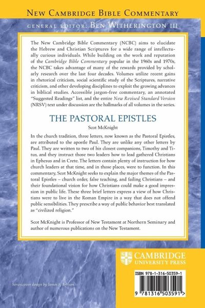 This commentary provides an up to date explanation of the Pastoral Epistles traditionally attributed to the apostle Paul. Scot McKnight seeks to explain the major themes of the Pastoral Epistles - church order, false teaching, and failing Christians - and their foundational vision for how Christians could make a good impression in public life.