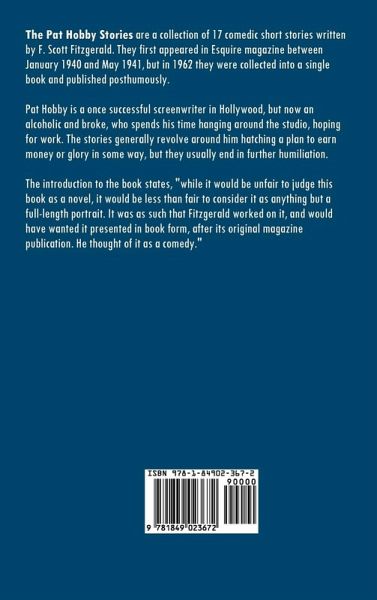 The Pat Hobby Stories are a collection of 17 comedic short stories written by F. Scott Fitzgerald. They first appeared in Esquire magazine between January 1940 and May 1941, but in 1962 they were collected into a single book and published posthumously. Pat Hobby is a once successful screenwriter in Hollywood, but now an alcoholic and broke, who spends his time hanging around the studio, hoping for work. The stories generally revolve around him hatching a plan to earn money or glory in some way, but they usually end in further humiliation. The introduction to the book states, "while it would be unfair to judge this book as a novel, it would be less than fair to consider it as anything but a full-length portrait. It was as such that Fitzgerald worked on it, and would have wanted it presented in book form, after its original magazine publication. He thought of it as a comedy."