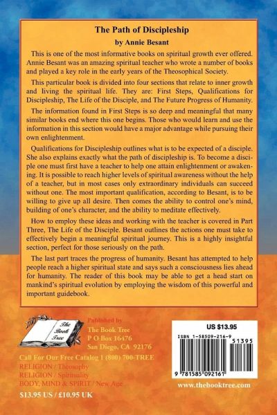 This is one of the most important books on spiritual growth ever offered. Annie Besant was an amazing teacher who wrote a number of books and played a key role in the early years of the Theosophical Society. This particular book reveals how to reach a higher level of awareness with the help of an enlightened teacher. It outlines the qualifications one must have, the general ideas behind discipleship, and how to employ these ideas with the help of a qualified teacher or guru. The last section covers the future of humanity's consciousness and how one can get a head start on spiritual evolution with the help of this book.