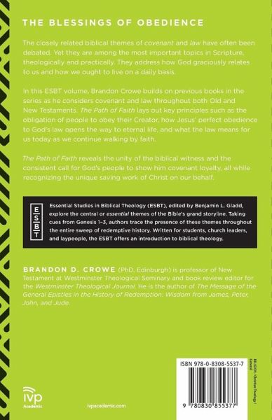 Biblical Foundations Book Awards Finalist The closely related biblical themes of covenant and law have often been debated. Yet they are among the most important topics in Scripture--theologically and practically. They address how God graciously relates to us and how we ought to live on a daily basis. In this ESBT volume, Brandon Crowe builds on previous books in the series as he considers covenant and law throughout both Old and New Testaments. The Path of Faith lays out key principles such as the obligation of people to obey their Creator, how Jesus' perfect obedience to God's law opens the way to eternal life, and what the law means for us today as we continue walking by faith. The Path of Faith reveals the unity of the biblical witness and the consistent call for God's people to show him covenant loyalty, all while recognizing the unique saving work of Christ on our behalf. Essential Studies in Biblical Theology (ESBT), edited by Benjamin L. Gladd, explore the central or "essential" themes of the Bible's grand storyline. Taking cues from Genesis 1-3, authors explore the presence of these themes throughout the entire sweep of redemption history. Written for students, church leaders, and laypeople, the ESBT offers an introduction to biblical theology.