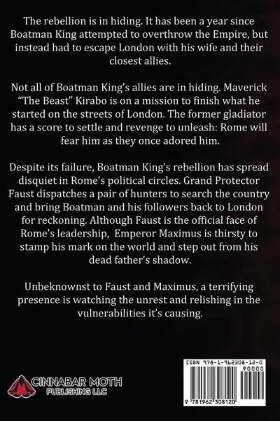 The rebellion is in hiding. It has been a year since Boatman King attempted to overthrow the Empire, but instead had to escape London with his wife and their closest allies. Not all of Boatman King's allies are in hiding. Maverick "The Beast" Kirabo is on a mission to finish what he started on the streets of London. The former gladiator has a score to settle and revenge to unleash: Rome will fear him as they once adored him. Despite its failure, Boatman King's rebellion has spread disquiet in Rome's political circles. Grand Protector Faust dispatches a pair of hunters to search the country and bring Boatman and his followers back to London for reckoning. Although Faust is the official face of Rome's leadership, Emperor Maximus is thirsty to stamp his mark on the world and step out from his dead father's shadow. Unbeknownst to Faust and Maximus, a terrifying presence is watching the unrest and relishing in the vulnerabilities it's causing.