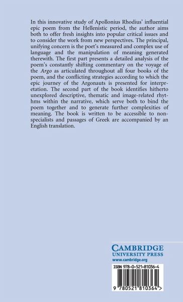 In this innovative study of Apollonius Rhodius' influential epic poem from the Hellenistic period, the author aims both to offer fresh insights into popular critical issues and consider it from new perspectives. The principal, unifying concern is the poet's measured and complex use of language and the manipulation of meaning generated therewith. The first part presents a detailed analysis of the poem's constantly shifting commentary on the voyage of the Argo as articulated throughout all four books of the poem, and the conflicting strategies according to which the epic journey of the Argonauts is presented for interpretation. The second part of the book identifies hitherto unexplored descriptive, thematic and image-related rhythms within the narrative, which serve both to bind the poem together and to generate further complexities of meaning. Accessible to non-specialists, with all Greek quotations accompanied by an English translation.