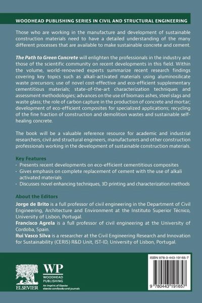The Path to Green Concrete will enlighten the scientific community on recent developments in this field. Within this volume, world-renowned experts summarize recent research findings covering key topics such as: alkali-activated materials using aluminosilicate waste precursors; use of novel cost-effective and eco-efficient supplementary cementitious materials; state of the art characterization techniques and assessment methodologies; advances on the use of biomass ashes, steel slags and waste glass; the role of carbon capture in the production of concrete and mortar; development of eco-efficient composites for specialized applications; recycling of the fine fraction of construction and demolition wastes; and sustainable self-healing concrete. This book will be a valuable reference resource for academic and industrial researchers, civil and structural engineers, manufacturers, and other construction professionals working in the development of sustainable construction materials.