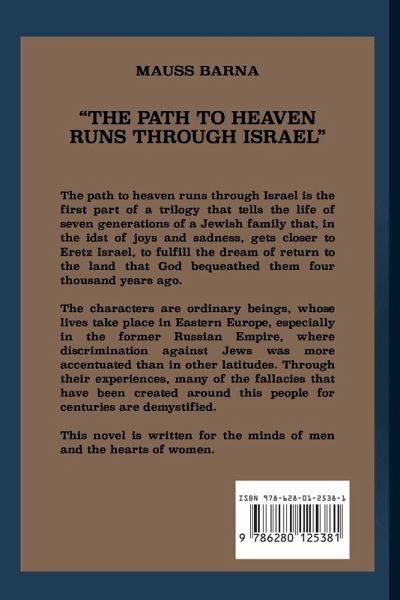 The path to heaven runs through Israel is the first part of a trilogy that tells the life of seven generations of a Jewish family that, in the midst of joys and sadness, gets closer to Eretz Israel, to fulfill the dream of return to the land that God bequeathed them four thousand years ago. The characters are ordinary beings, whose lives take place in Eastern Europe, especially in the former Russian Empire, where discrimination against Jews was more accentuated than in other latitudes. Through their experiences, many of the fallacies that have been created around this people for centuries are demystified. This novel is written for the minds of men and the hearts of women.