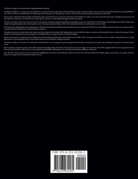 "The Path to Six Figures: A Practical Guide to Making $100,000 and Beyond" "The Path to Six Figures" is an empowering and comprehensive non-fiction book that equips readers with the knowledge, strategies, and practical advice necessary to achieve the significant milestone of earning $100,000 or more. With a clear focus on actionable steps and a holistic approach to financial success, this guide takes readers on a transformative journey toward financial abundance and freedom. Starting with an exploration of financial goals and debunking common myths about money and income, the book lays the foundation for readers to assess their current financial situation. Through practical exercises and expert guidance, readers learn to track their income, analyze expenses, and create a realistic budget that aligns with their income goals. "The Path to Six Figures" delves into various avenues for income growth, including leveraging existing skills, pursuing higher-paying careers and industries, and developing in-demand high-income skill sets. Readers gain insights into negotiating higher salaries, advancing their careers, and seizing entrepreneurial opportunities such as starting side businesses or exploring passive income streams. The book provides valuable guidance on managing finances effectively, eliminating debt, building savings, and exploring investment opportunities. Readers learn about different investment options, tax strategies, and ways to optimize their financial decisions for long-term wealth accumulation. Throughout the journey, the book addresses the importance of personal growth and mindset shifts, helping readers overcome self-doubt, imposter syndrome, and limiting beliefs that may hinder their progress. It offers strategies for enhancing productivity, time management, and building resilience to navigate obstacles on the path to six figures. With practical chapters on marketing, sales, networking, and personal branding, the book equips readers with the necessary skills to thrive as entrepreneurs and business owners. It explores scaling side businesses, creating digital products, and harnessing the power of social media to generate income and build a strong personal brand. "The Path to Six Figures" also touches on essential aspects of work-life balance, stress management, and nurturing personal relationships, ensuring readers can maintain their well-being and enjoy the fruits of their financial success. By the end of this comprehensive guide, readers will have gained the knowledge, skills, and mindset needed to achieve the coveted six-figure income milestone. They will be equipped with the tools to manage their finances effectively, build sustainable wealth, and set new financial goals beyond $100,000, enabling them to live a life of financial abundance, fulfillment, and freedom. Note: The above synopsis captures the essence of the book, highlighting its key themes and transformative journey for readers. The actual book will provide in-depth insights, practical advice, case studies, and expert perspectives to support readers on their path to financial success.