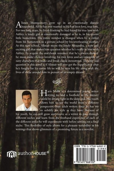 Alistair Montgomery grew up in an emotionally distant household. All he has ever wanted in life has been love, true love. For two long years, he lived thinking he had found his true love with Ashley, a lovely girl as emotionally damaged as he is, in his quaint little hometown. His entire mindset is changed when he is exiled from his hometown to a private school by his overbearing mother. At this new school, Alistair meets the lovely Alexandra, a new and exciting girl that makes him question whether he's really in love with Ashley. To acquire the storybook romance that he's always desired, he must make choices involving his two loves and an ensemble of zany characters that make and break classic stereotypes. The only real question in this novel is if Alistair will ever get the happily ever after he's fought for his entire life or will he ruin his life along with the lives of those around him in pursuit of an empty dream?