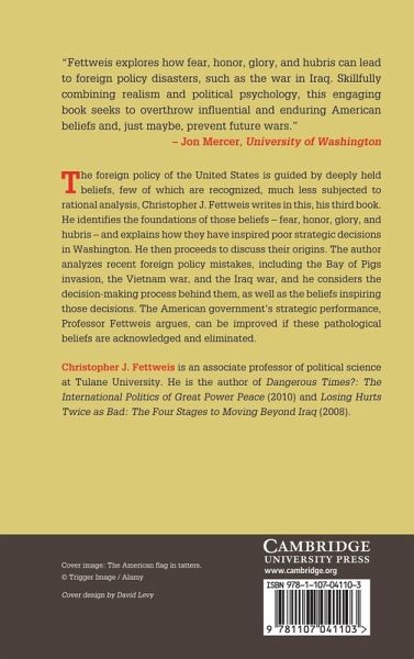 The foreign policy of the United States is guided by deeply held beliefs, few of which are recognized much less subjected to rational analysis, Christopher J. Fettweis writes, in this, his third book. He identifies the foundations of those beliefs - fear, honor, glory and hubris - and explains how they have inspired poor strategic decisions in Washington. He then proceeds to discuss their origins. The author analyzes recent foreign policy mistakes, including the Bay of Pigs, the Vietnam War, and the Iraq War, and he considers the decision-making process behind them, as well as the beliefs inspiring those decisions. The American government's strategic performance, Professor Fettweis argues, can be improved if these pathological beliefs are recognized and eliminated.
