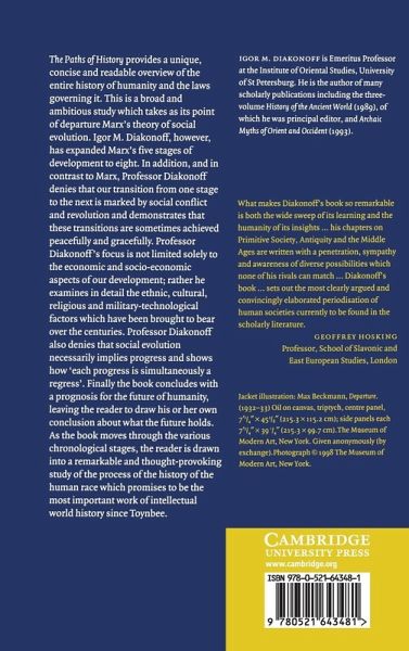 "The Paths of History provides an overview of the entire history of humanity and the laws governing it. This study takes as its point of departure Marx's theory of social evolution. Igor M. Diakonoff has expanded Marx's five stages of development to eight. In addition, and in contrast to Marx, Diakonoff denies that our transition from one stage to the next is marked by social conflict and revolution and demonstrates that these transitions are sometimes achieved peacefully and gracefully. Professor Diakonoff's focus is not limited solely to the economic and socio-economic aspects of our development; rather he examines in detail the ethnic, cultural, religious and military-technological factors which have been brought to bear over the centuries. He also denies that social evolution necessarily implies progress and shows how 'each progress is simultaneously a regress'. Finally the book concludes with a prognosis for the future of humanity."--BOOK JACKET.