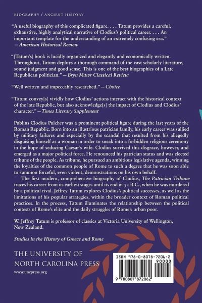 Publius Clodius Pulcher was a prominent political figure during the last years of the Roman Republic. Born into an illustrious patrician family, his early career was sullied by military failures and especially by the scandal that resulted from his allegedly disguising himself as a woman in order to sneak into a forbidden religious ceremony in the hope of seducing Caesar's wife. Clodius survived this disgrace, however, and emerged as a major political force. He renounced his patrician status and was elected tribune of the people. As tribune, he pursued an ambitious legislative agenda, winning the loyalties of the common people of Rome to such a degree that he was soon able to summon forceful, even violent, demonstrations on his own behalf. The first modern, comprehensive biography of Clodius, The Patrician Tribune traces his career from its earliest stages until its end in 52 B.C., when he was murdered by a political rival. Jeffrey Tatum explores Clodius's political successes, as well as the limitations of his popular strategies, within the broader context of Roman political practices. In the process, Tatum illuminates the relationship between the political contests of Rome's elite and the daily struggles of Rome's urban poor.
