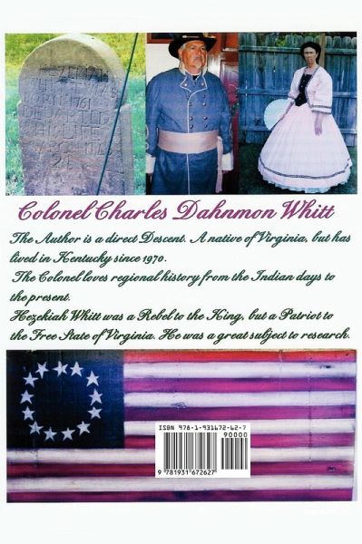 The Patriot, Hezekiah Whitt is based on a true story, I try to keep dates, places, and names correct. The book deals with the years 1760-1846 and is centered in what is now Tazewell County, VA. Hezekiah was an Indian Spy, Militiaman, Sheriff, and a life time Gentlemen Justice Of The Peace appointed by the Governor of Virginia in 1800. Hezekiah was a rebel against England and a Patriot to the Free State of Virginia and the United States. Hezekiah married an Indian Lady. The book has accounts of several Indian stories and fights. Also in the back is listed the descendents of Hezekiah Whitt. (Genealogy Section) Areas of South Carolina, North Carolina, Tennessee, Virginia, Kentucky, Ohio, Indiana, and Illinois are all mentioned in this collection. I am a direct descendent.