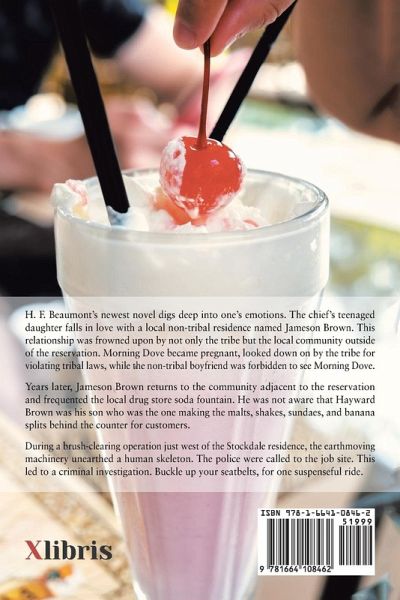 H. F. Beaumont's newest novel digs deep into one's emotions. The chief's teenaged daughter falls in love with a local non-tribal residence named Jameson Brown. This relationship was frowned upon by not only the tribe but the local community outside of the reservation. Morning Dove became pregnant, looked down on by the tribe for violating tribal laws, while the non-tribal boyfriend was forbidden to see Morning Dove. Years later, Jameson Brown returns to the community adjacent to the reservation and frequented the local drug store soda fountain. He was not aware that Hayward Brown was his son who was the one making the malts, shakes, sundaes, and banana splits behind the counter for customers. During a brush-clearing operation just west of the Stockdale residence, the earthmoving machinery unearthed a human skeleton. The police were called to the job site. This led to a criminal investigation. Buckle up your seatbelts, for one suspenseful ride.