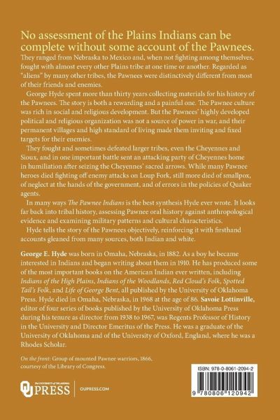 Volume 128 in the The Civilization of the American Indian Series "After 30 years of assessing firsthand accounts (both Indian and white), Pawnee oral history, anthropological and archeological evidence, Hyde completed probably his best synthesis among the many works he produced. Although other fragmentary works have been published on the Pawnees, none has yet touched Hyde's work for comprehensiveness or insight. And as stated in the foreword, no study of the Plains or Plains Indians is complete without some consideration of the Pawnees."-Choice. "His narrative of Pawnee history since the early 1800s is based upon careful research and thoughtful reconstruction and in this reader's opinion is rhetorically superior."-American West. "George Hyde painstakingly assembled information from early accounts, Indian Bureau records, tribal legends, and recent archaeological investigations to present this cohesive story of the early Caddoan tribes, the evolution of the Pawnee groups as they were known in the nineteenth century and their eventual fate on an Oklahoma reservation. His work is factual and objective. . . .The Pawnee Indians is written in the best Hyde tradition-scholarly, objective and remarkable pleasant to read. It is unhesitantly recommended to anyone interested in Plains Indians and their relations with the whites. One item of special interest is the section of the appendix discussing the true identity of the Padouca Indians so often mentioned in early French accounts."-Museum of the Fur Trade Quarterly.
