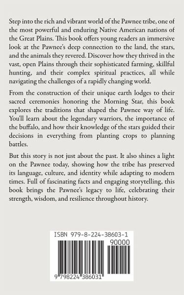 Step into the rich and vibrant world of the Pawnee tribe, one of the most powerful and enduring Native American nations of the Great Plains. This book offers young readers an immersive look at the Pawnee's deep connection to the land, the stars, and the animals they revered. Discover how they thrived in the vast, open Plains through their sophisticated farming, skillful hunting, and their complex spiritual practices, all while navigating the challenges of a rapidly changing world. From the construction of their unique earth lodges to their sacred ceremonies honoring the Morning Star, this book explores the traditions that shaped the Pawnee way of life. You'll learn about the legendary warriors, the importance of the buffalo, and how their knowledge of the stars guided their decisions in everything from planting crops to planning battles. But this story is not just about the past. It also shines a light on the Pawnee today, showing how the tribe has preserved its language, culture, and identity while adapting to modern times. Full of fascinating facts and engaging storytelling, this book brings the Pawnee's legacy to life, celebrating their strength, wisdom, and resilience throughout history.